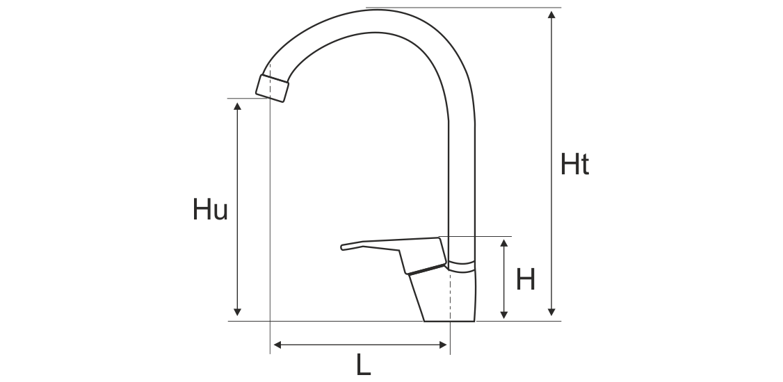 Baterie Bucatarie Lebada Tip U Aqua / L[mm]: 135; Hlev[mm]: 70; Hu[mm]: 195; Ht[mm]: 265