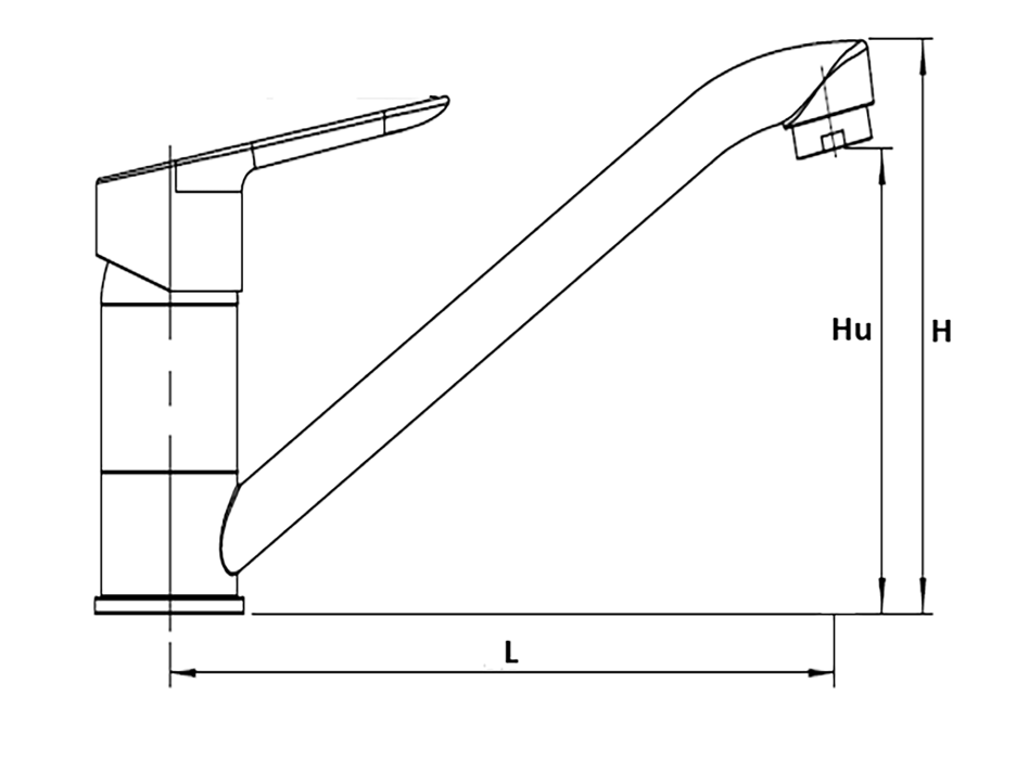 Baterie Bucatarie Pipa Lunga 2025 Evosanitary / L[mm]: 202; Hlev[mm]: 116; Hu[mm]: 104